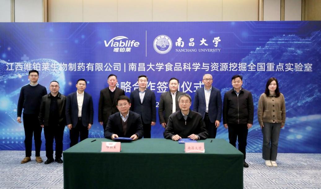 3月10日,南昌大学食品科学与资源挖掘全国重点实验室、江西唯铂莱生物制药有限公司战略合作签约仪式在赣江新区举行。