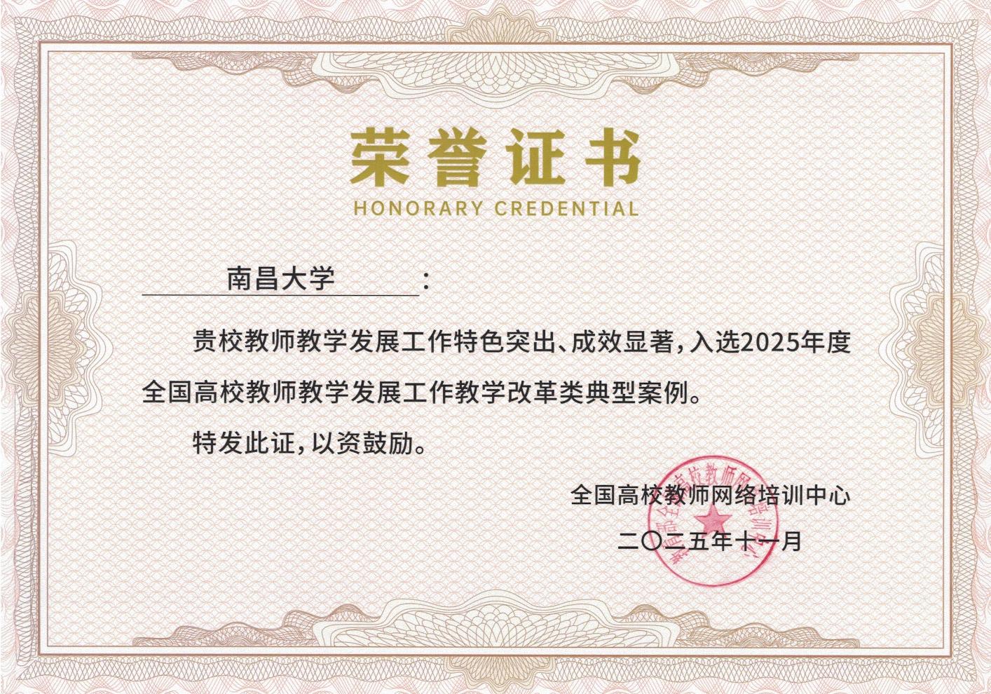 本网讯(教务处、教师教学发展中心)11月7日,在教育部高等教育司指导下,由全国高校教师网络培训中心与北京大学联合主办的全国高校教师教学发展中心工作会议在京召开。南昌大学获评“全国高校教师教学发展工作典型优秀案例”。本次评选经过多轮严格的专家评审,全国共有20所高校获此殊荣。