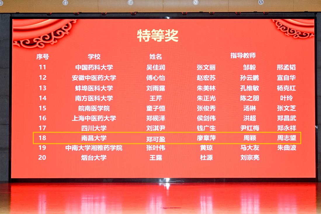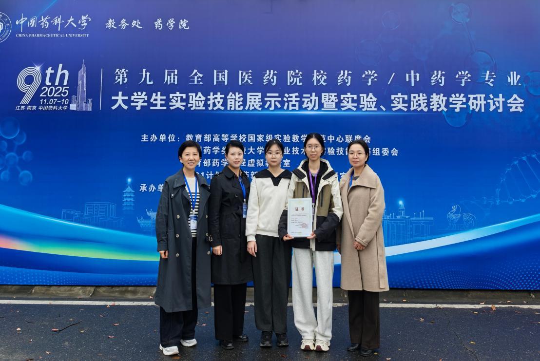 本网讯(药学院)近日,在第九届全国医药院校药学/中药学专业大学生实验技能竞赛中,我校药学院郑可盈同学荣获特等奖,药学院廖章萍、周颖、周志望等担任指导教师。